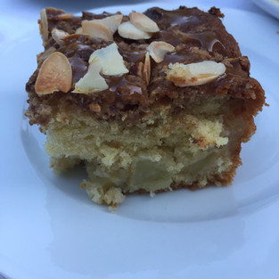 The perfect balance of sweet apple, crunchy and woody nuts and silky praline, not forgetting the golden roasted almond flakes on the top! This cake gives you all of that in one slice of airy cake. These flavors work so well to get a warming and yummy cake, the different components